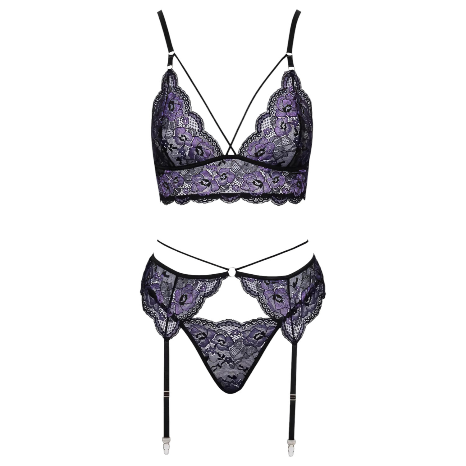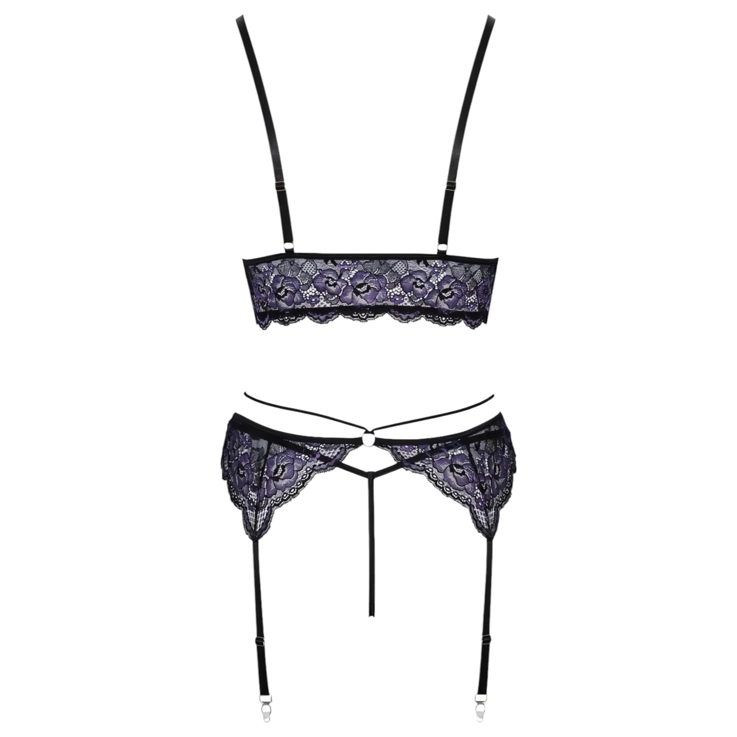 Pārskats Cottelli - 3-daļīgs mežģīņu veļas komplekts (melni-violets) - XL