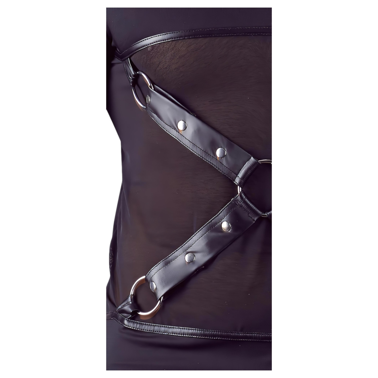 Seksīgs, maigs un patīkams pieskārienam vīriešu tops ar krusteniskām lencēm, caurspīdīgiem neca auduma ielaidumiem.