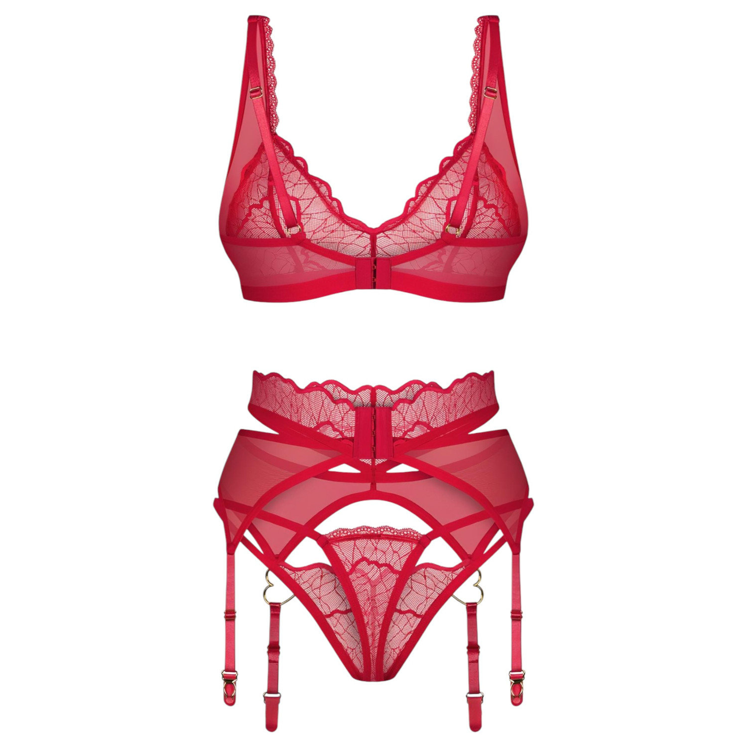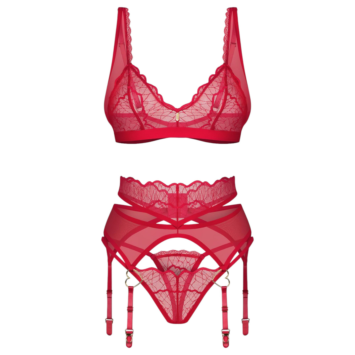 Obsessive Cupid Desir - mežģīņu apakšveļas komplekts (sarkans)