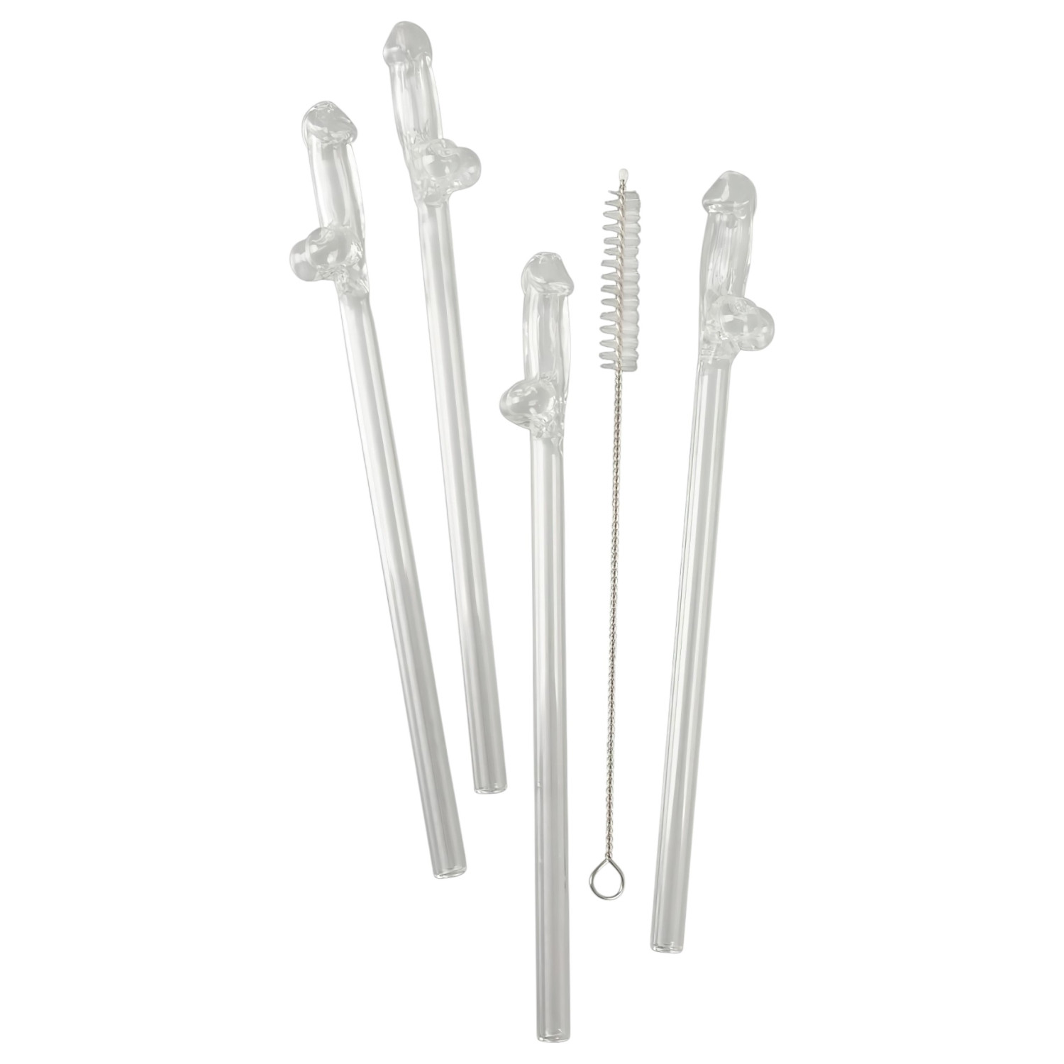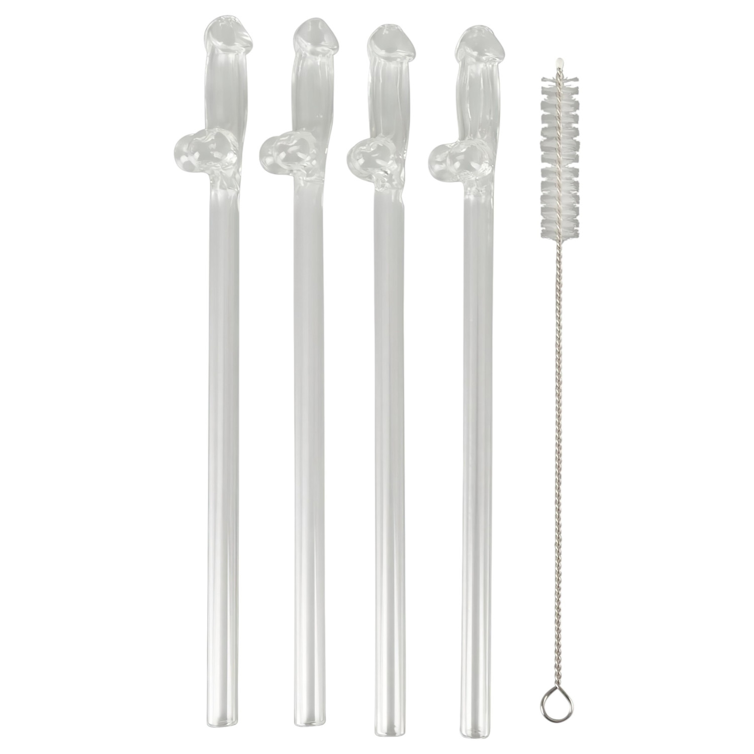 • 4 caurspīdīgi stikla salmiņi ar dzimumlocekļa galu