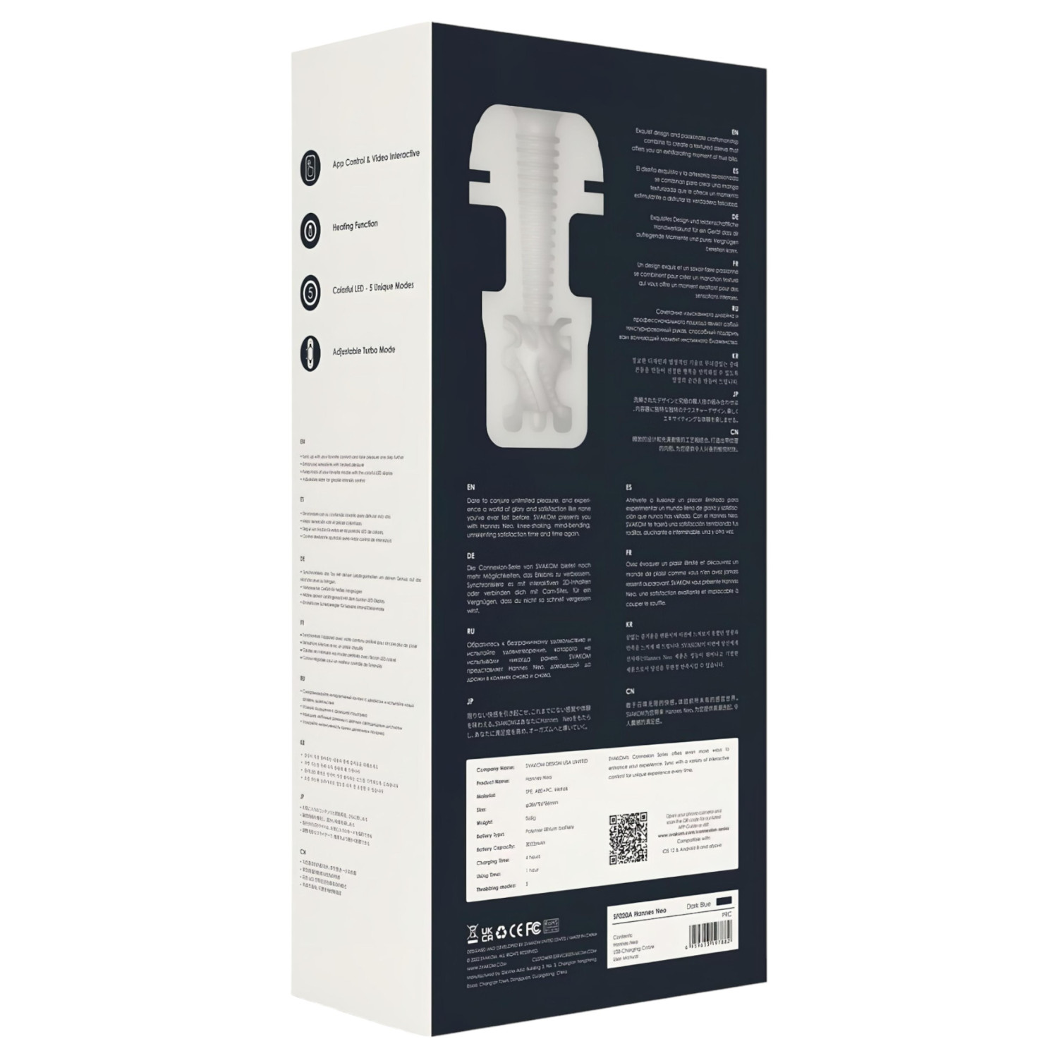 Svakom Hannes Neo gudrais masturbators ir mūsdienu tehnoloģijas un dzīvīgās stimulācijas kombinācija. Automātiskā kustība uz augšu un leju atgādina dabisko seksa ritmu, kamēr sildošā funkcija un stimulējošā iekšējā virsma pastiprina pieredzi. Ierīce ir saderīga ar VR un sinhronizējama ar interaktīviem video, sniedzot pilnīgi jaunu dimensiju individuālajai vai pāru izklaidei. Izņemams, mīkstais iekšējais ieliktnis nodrošina vienkāršu tīrīšanu, un iebūvētais akumulators garantē ērti lietošanu.